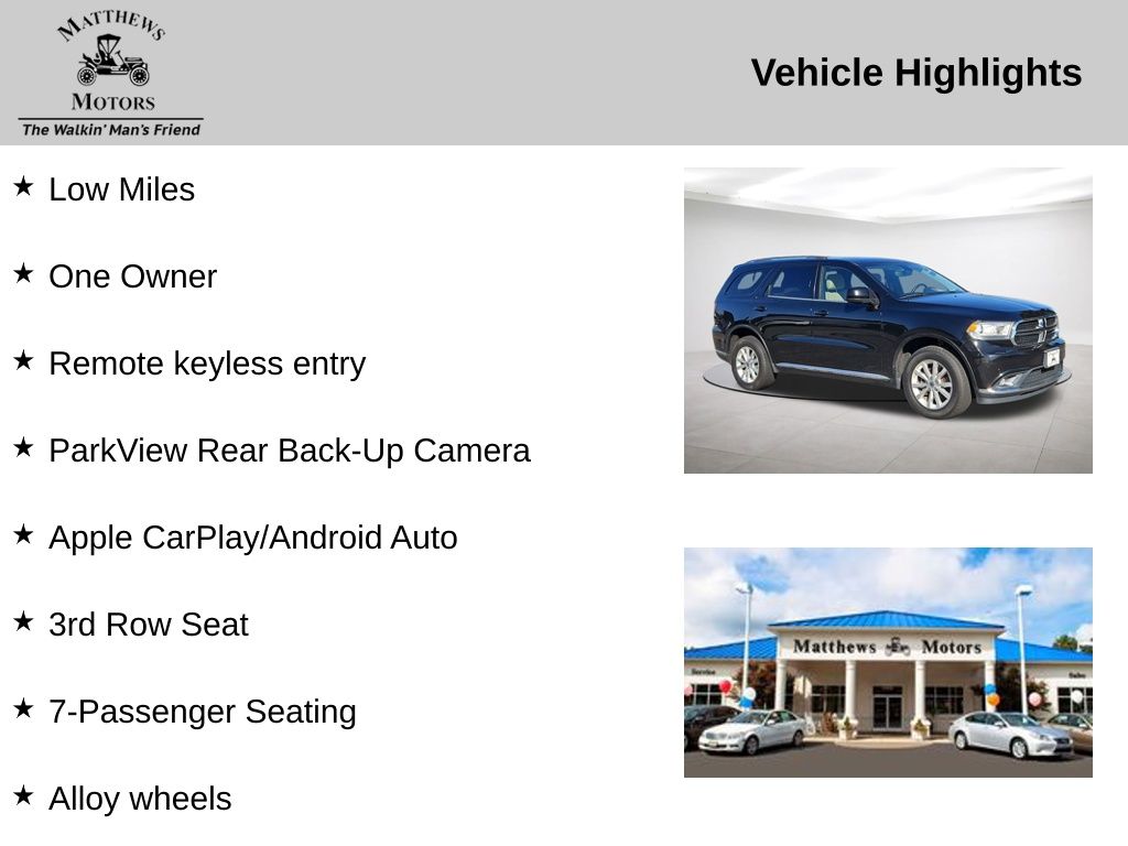**Save time, Buy Online with Matthews Motors Express Point.Click.Buy**We have over 300 certified pre-owned vehicles, most come with a lifetime powertrain, engine and transmission warranty. There's a variety of reasons why our customers continue to return to our 4 conveniently located showrooms throughout North Carolina. Which are a few of the reasons we have been awarded CIADA Quality Dealer of The Year and the BBB Torch Award Winner. Here at Matthews Motors we're committed to providing the ultimate automotive dealership experience.Low Miles, One Owner, AWD, 3rd Row Seat, 7-Passenger Seating, Alloy wheels, Apple CarPlay/Android Auto, ParkView Rear Back-Up Camera, Remote keyless entry.CARFAX One-Owner. Odometer is 4297 miles below market average!