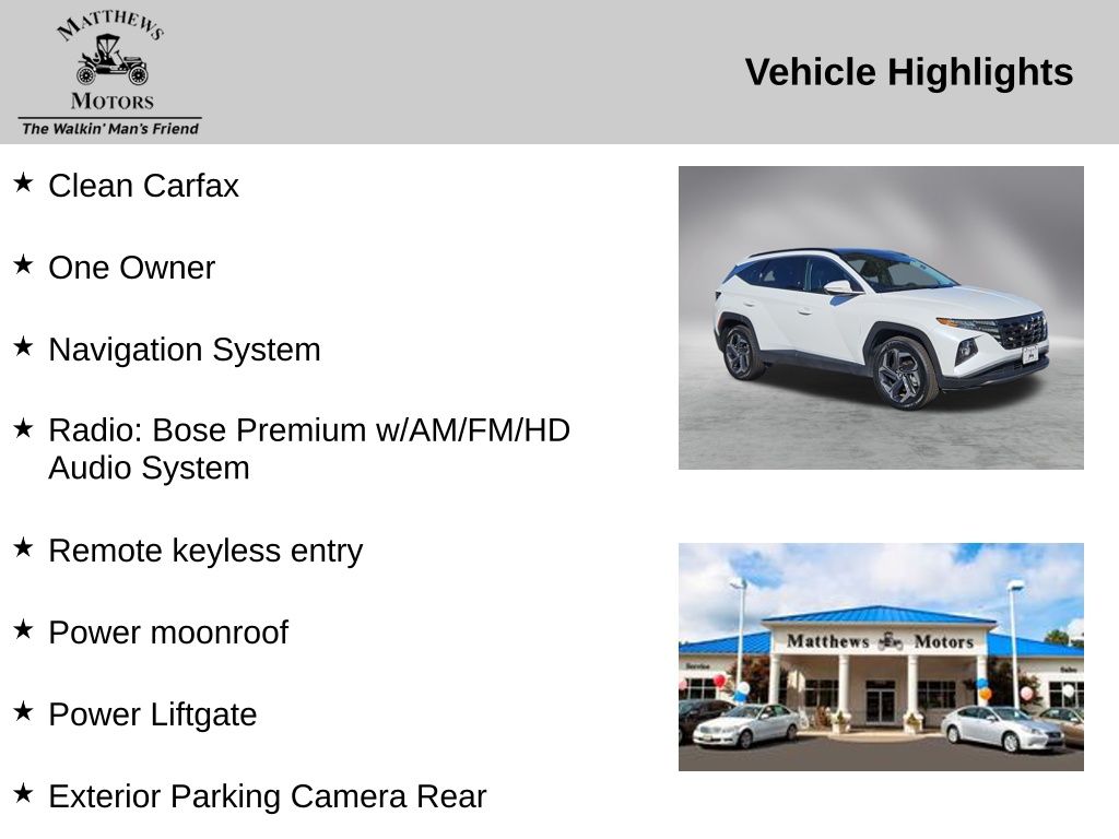 **Save time, Buy Online with Matthews Motors Express Point.Click.Buy**We have over 300 certified pre-owned vehicles, most come with a lifetime powertrain, engine and transmission warranty. There's a variety of reasons why our customers continue to return to our 4 conveniently located showrooms throughout North Carolina. Which are a few of the reasons we have been awarded CIADA Quality Dealer of The Year and the BBB Torch Award Winner. Here at Matthews Motors we're committed to providing the ultimate automotive dealership experience.Clean Carfax, One Owner, I4, Alloy wheels, Apple CarPlay & Android Auto, Exterior Parking Camera Rear, Heated & Ventilated Front Bucket Seats, Heated rear seats, Navigation System, Power Liftgate, Power moonroof, Power passenger seat, Radio: Bose Premium w/AM/FM/HD Audio System, Remote keyless entry.CARFAX One-Owner. Clean CARFAX.